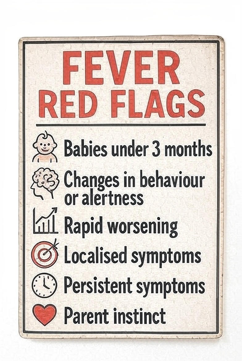 • ️ In children and adults alike, we define fever as 38.0°C (100.4°F) or higher, measured by a reliable thermometer (ear or underarm for older children; rectal for infants when advised).